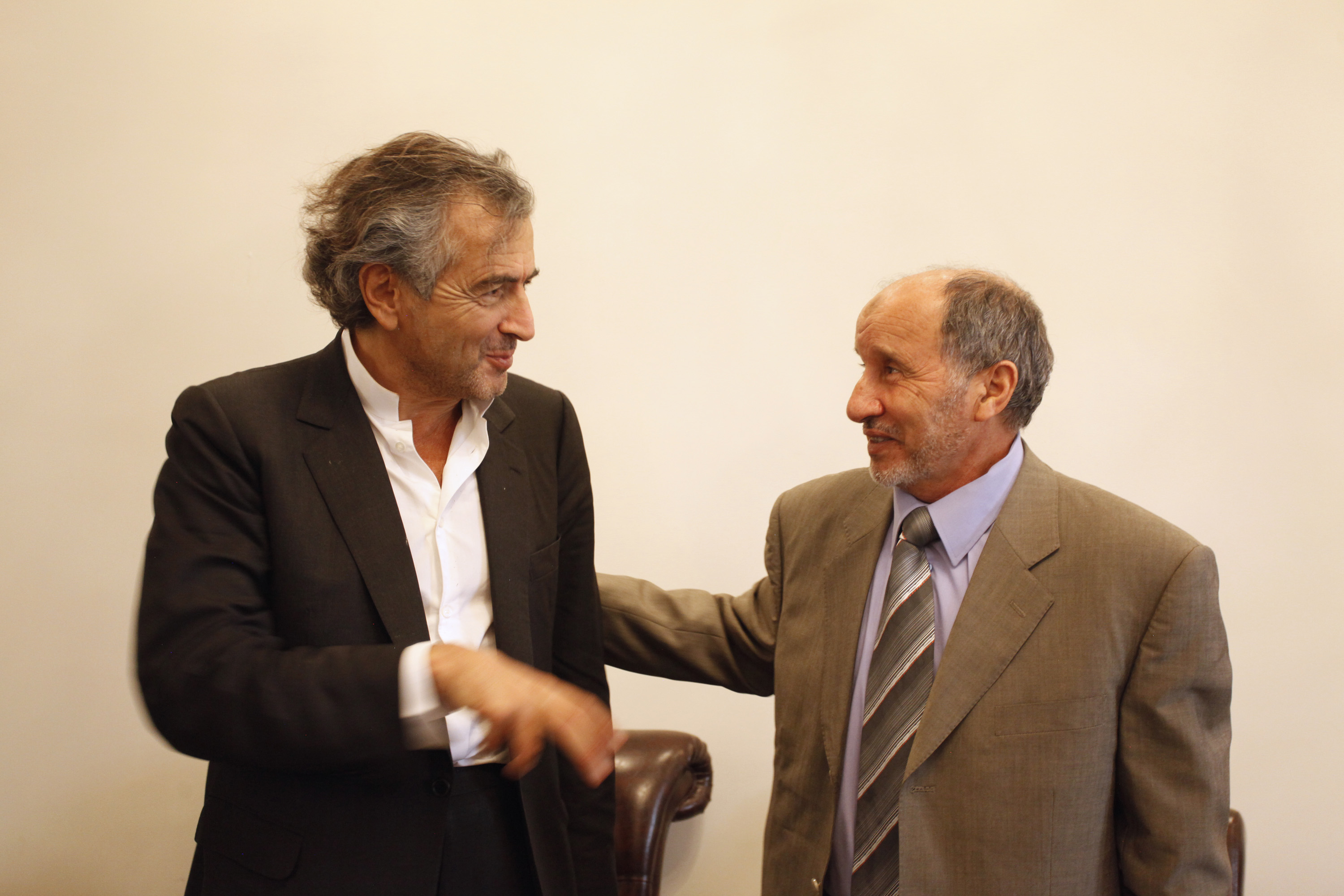 Benghazi (Libye), le 5 mars. Bernard-Henri Lévy et Mustapha Abdel Jalil, le président du Conseil national de transition.(c) Marc Roussel